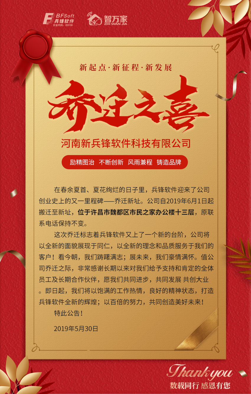 [兵锋喜讯]喜迎河南新兵锋软件科技有限公司乔迁之喜