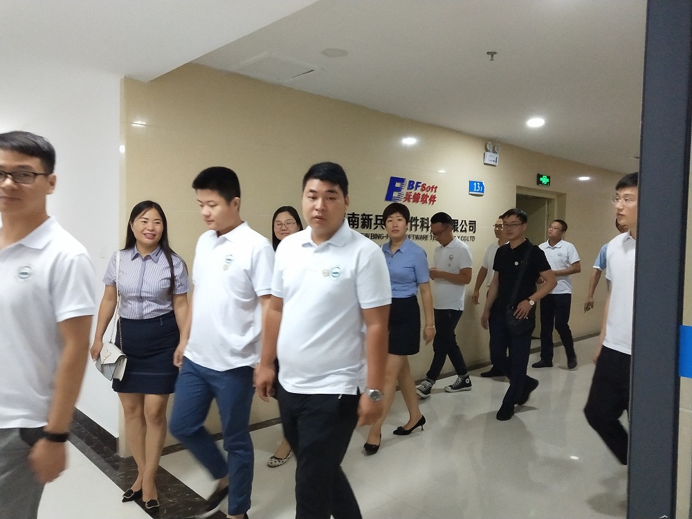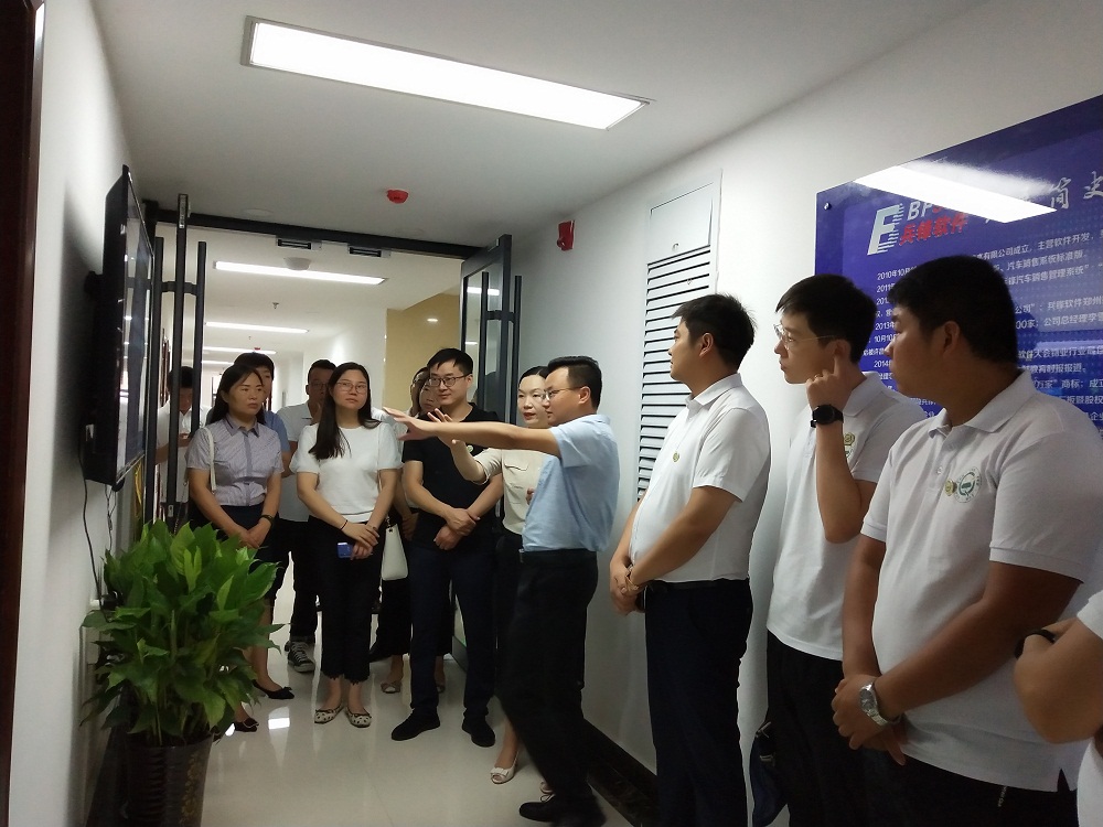 2019年7月31日上午,魏都区委统战部副部长、工商联党组书记郑晓伟,长葛市青创联会长、河南四达电力设备股份有限公司总经理陈四甫带领长葛市青创会一行20多名人员到河南新兵锋软件科技有限公司进行参观调研,魏都区工商联副主席张语、长葛市工商联党组书记栗莉陪同调研。兵锋软件总经理李雪锋代表兵锋软件对长葛市青创会的到来表示热烈的欢迎。