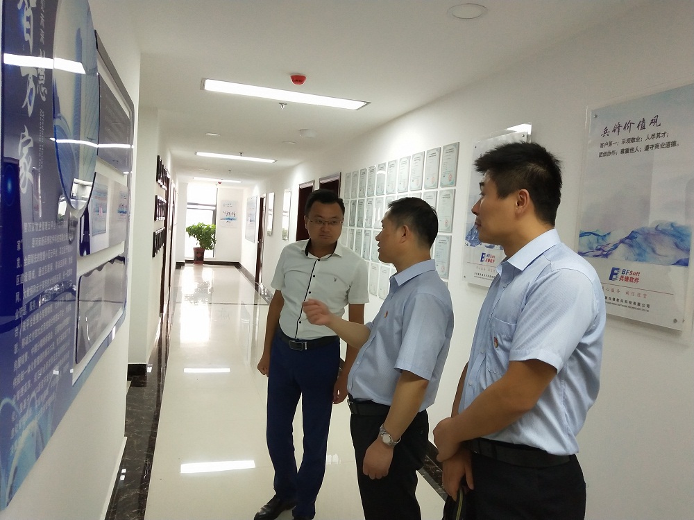2019年8月1日下午,许昌市魏都区司法局局长、党组书记闫新红,副局长宋博在副主任刘聪,法律援助中心主任朱焕英,公证处孟蕾的陪同下到河南新兵锋软件科技有限公司进行调研。