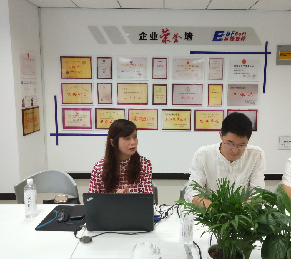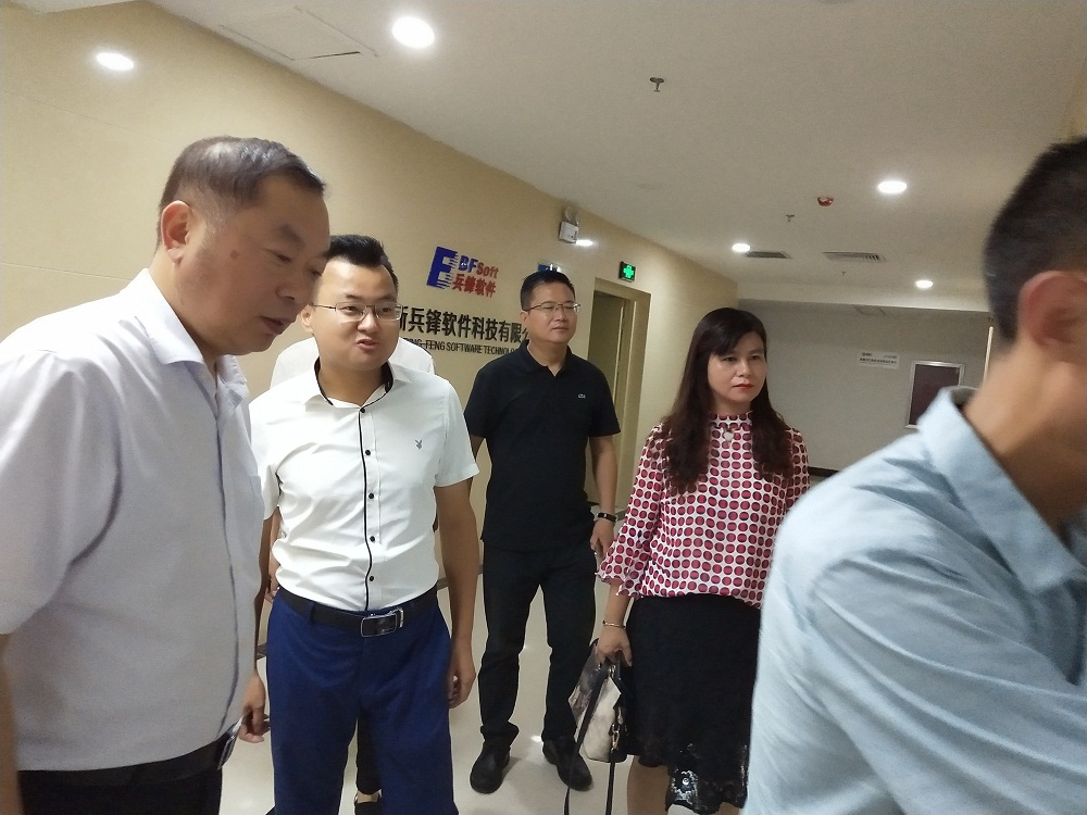 兵锋软件总经理李雪锋陪同寇玉平部长一行人员参观公司办公区后并在会议室进行了交流座谈。