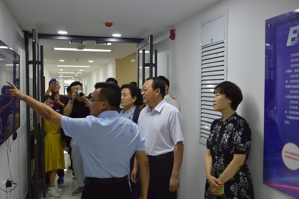 2019年8月27日上午,许昌市政协主席刘保新莅临河南新兵锋软件科技有限公司进行参观调研,区政协主席杜晓辉、区政协党组副书记孙铁柱、市政协秘书长高坤黎等陪同调研。兵锋软件总经理、许昌市魏都区互联网行业协会会长李雪锋,协会副会长宋一、朱润光、陈俊永、刘斌,协会秘书长罗红昌及协会理事代表秦建伟热情接待了调研团一行。