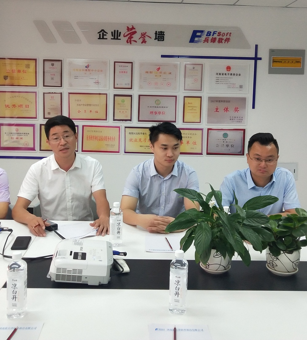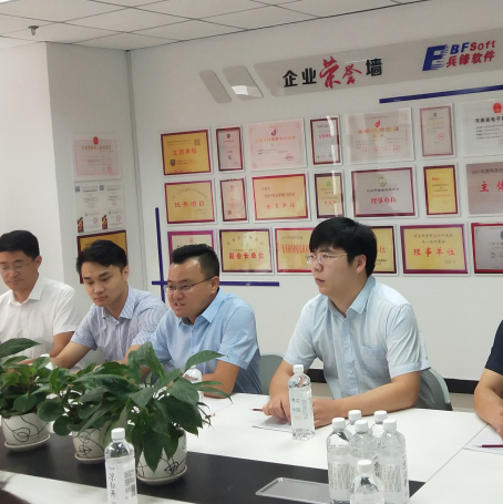兵锋软件总经理李雪锋陪同刘保新主席一行人员参观公司办公区后并在会议室进行了详细的会谈。