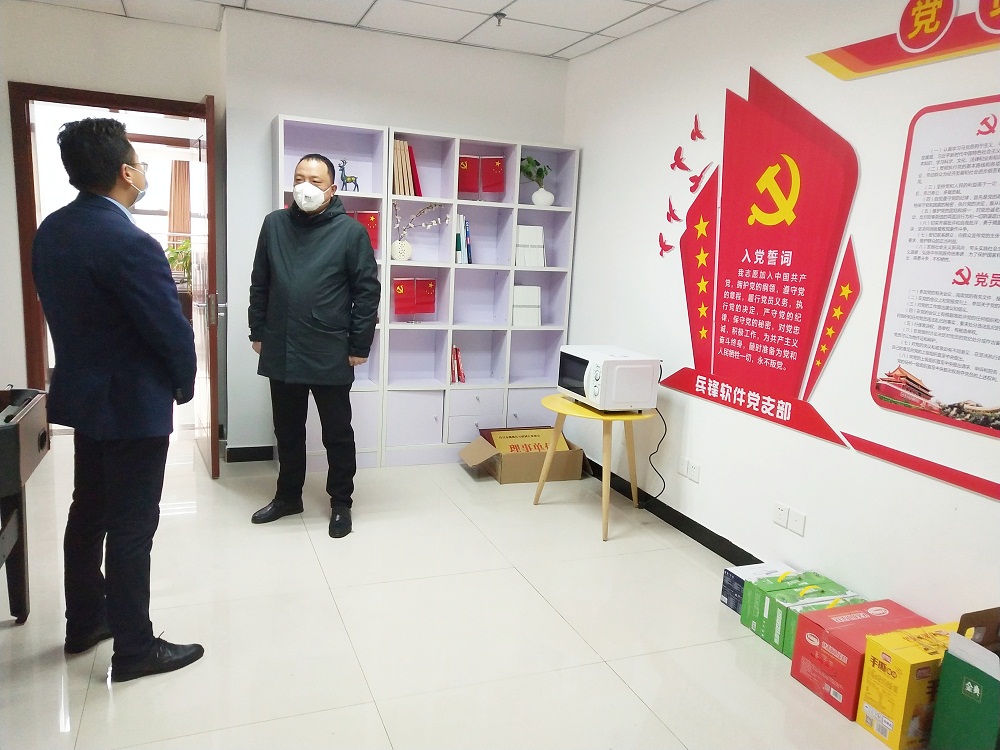 2月25日上午,科工局副局长张超民到兵锋软件实地视察复工复产情况。