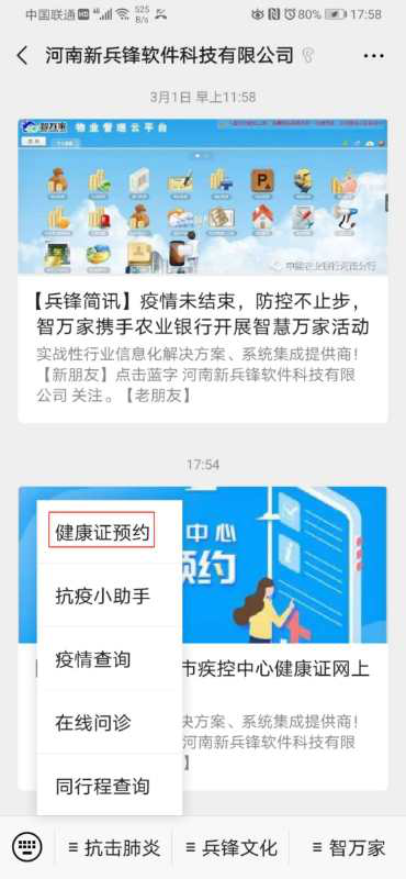 5.点击“抗击肺炎”,选择健康证预约,即可预约办理。