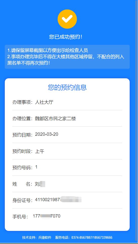 为全力保障人民群众生命安全和身体健康,方便广大企业和群众办事,更为了提供高效优质政务服务,魏都区行政服务中心联合河南新兵锋软件科技有限公司共同开发了“网上预约”通道平台,兵锋软件用1天时间,加班加点完成预约平台开发、调试、上线工作,该平台于2020年3月18日正式上线。