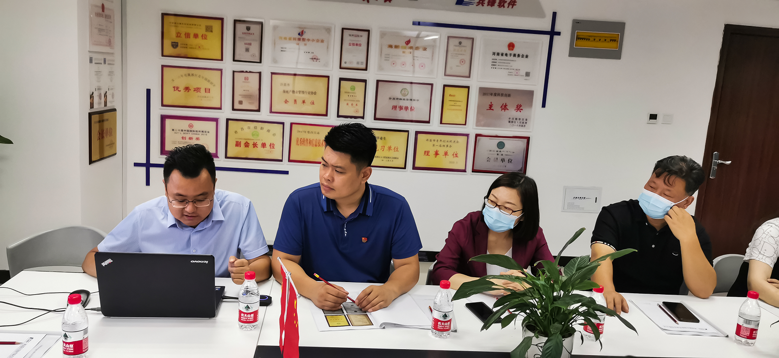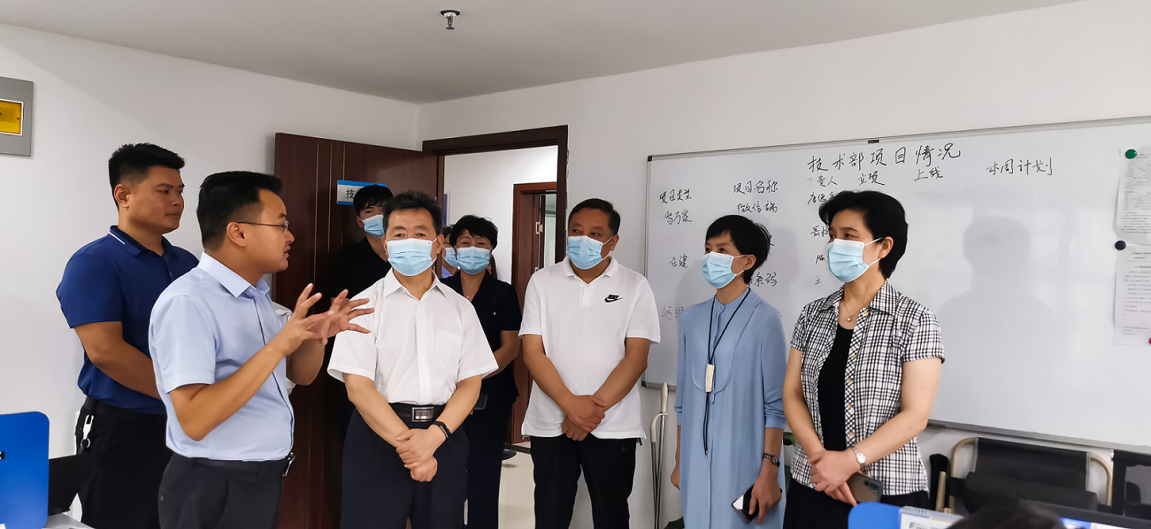 2020年8月7日上午,南阳市政协副主席庹军一行莅临河南新兵锋软件科技有限公司开展网络综合治理体系建设调研考察工作。许昌市政协副主席崔合荣,许昌市委网信办主任魏凯歌,魏都区委常委、宣传部长刘明等陪同调研,兵锋软件总经理李雪锋、党支部书记梅良战热情接待了考察组一行。
