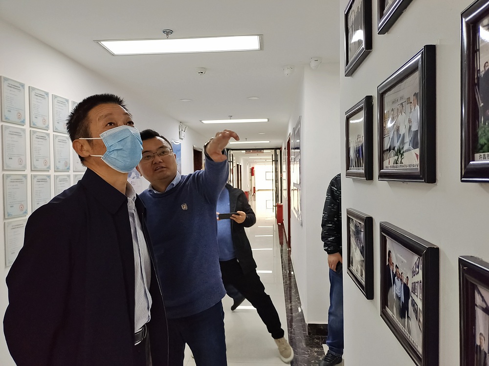 张继辉一行在民进会员、公司总经理李雪锋的引领下,参观了公司办公场所,详细了解公司的业务开展、发展规划、运营情况及近年来依靠科技创新发展所取得的成绩和业绩等。总经理李雪锋对协会简介、成立以来开展的工作、协会党建情况及协会未来发展规划进行详细汇报。