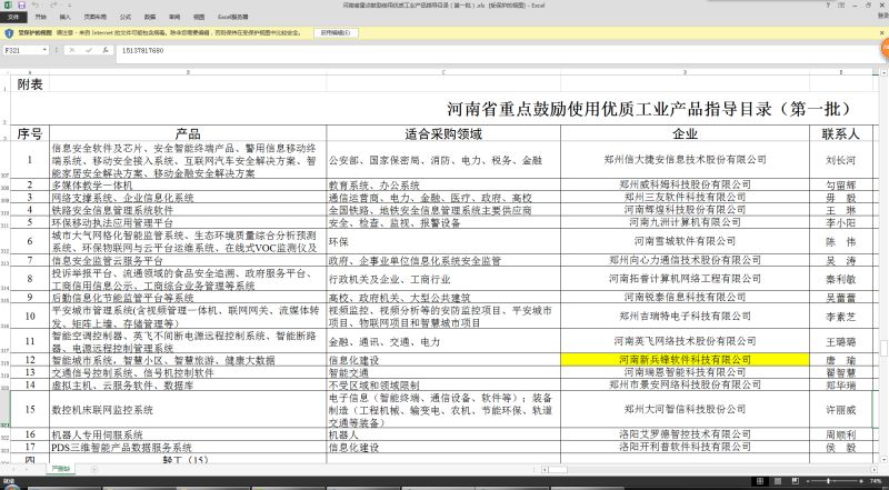 号外号外!热烈庆祝河南新兵锋软件科技有限公司荣登"河南省重点鼓励使用优质工业产品指导目录 "。我大河南入围的IT公司只有17家!
