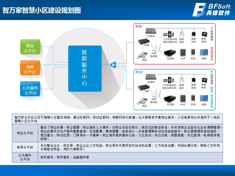 智万家物业管理云平台是一款专门为物业行业提供O2O互联网模式和智能物联网的SAAS平台。该平台包含了PC端门户、APP、微信平台,是以小区为单位,业主、物业公司、商家为服务对象,通过互联网技术、PC端和移动终端为载体所打造的“互联网+”小区的智慧小区平台,为物业公司由传统物业管理到新型智能小区提供解决方案。
