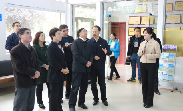 在五一路街道许继社区,调研组首先听取了社区党建工作情况汇报,查看了“五室一厅三站一校”党建阵地,对社区坚持党建引领,创建“123”模式智慧社区,打造“15分钟生活圈”的做法给予充分肯定。在社区党校,高厅长收听了社区党之声艺术团创编的《新时代新征程之歌》《合格党员之歌》,深受鼓舞,鼓励基层党员要发挥好先锋模范带头作用,争做学习宣传贯彻落实十九大精神的表率。