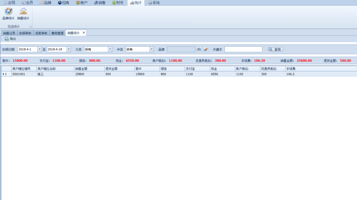 该系统主要应用于大型商场、购物广场等场景,实现商场的信息一体化、集团化管理,在运营模式上,可支持单店模式、连锁模式或区域连锁模式。系统能有效对商场内部的商户、店铺、销售管理、财务等模块进行信息化管理,避免传统管理模式的数据重复冗余漏记、管理不能覆盖到底层、信息沟通不及时等弊端,极大的提高商场的管理效率和管控精准度。