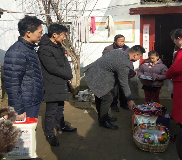 2019年2月1日上午,兵锋软件党支部书记梅良战带领公司党员干部赶往鄢陵县大马镇西司家村,在鄢陵县共青团委和村委书记的陪同下,来到了该村贫困户陈欣怡小朋友的家中。并为他们送去了图书、书包、米、油、水果、牛奶等物品和1000元慰问金。